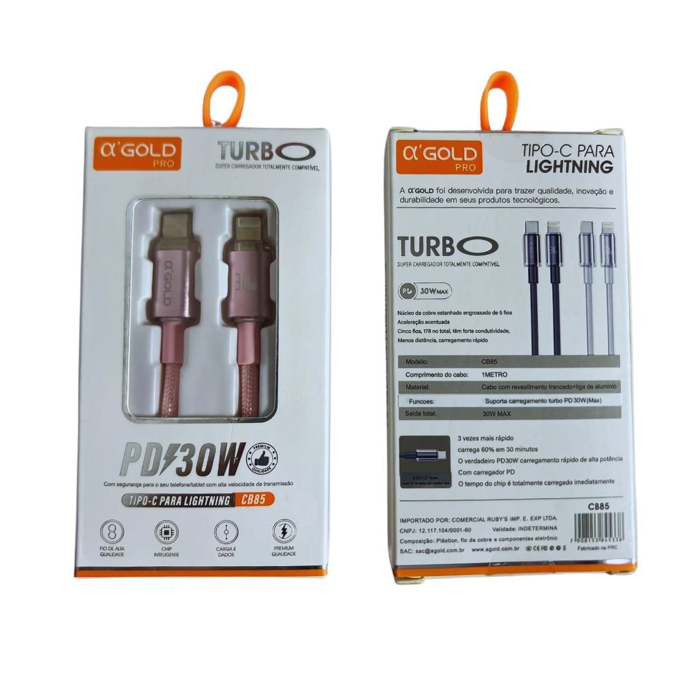 - 1 x Cabo de Dados Type-C para iPhone 1m 30W A’Gold CB85