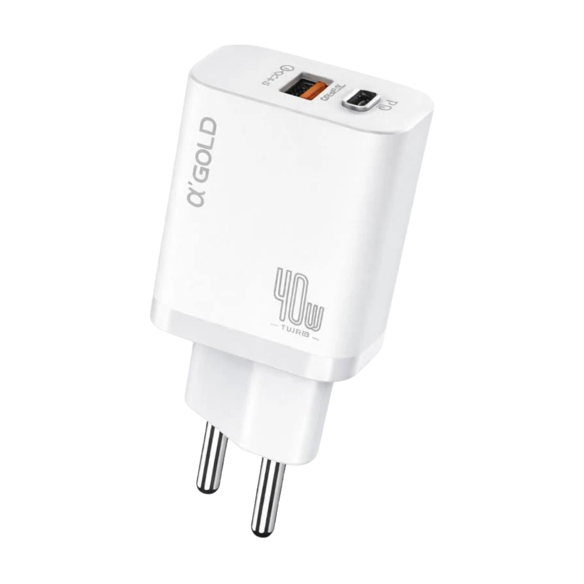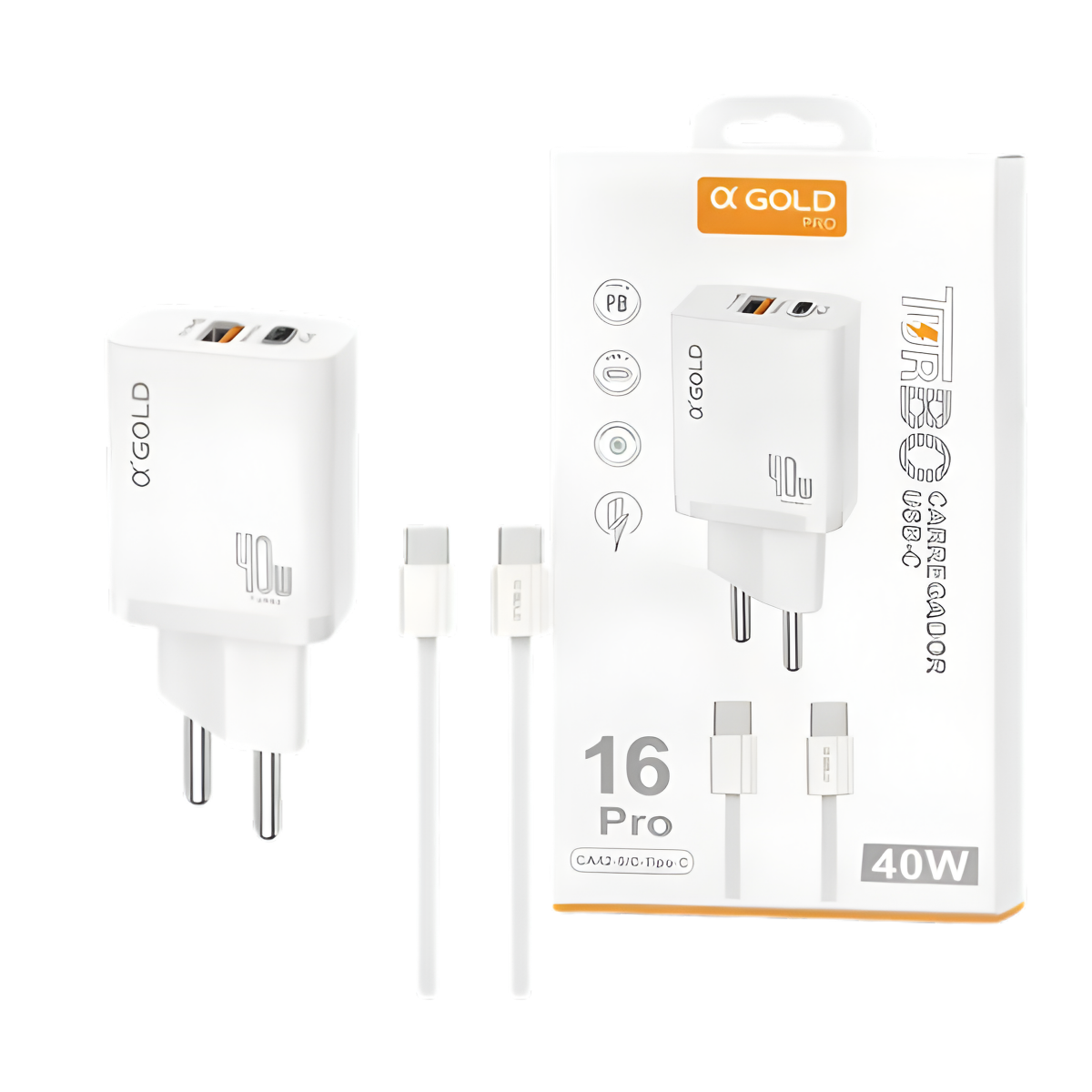 Carregador Turbo A’GOLD 16 PRO 40W USB-C + USB-A PD QC – Rápido, Seguro e Inteligente