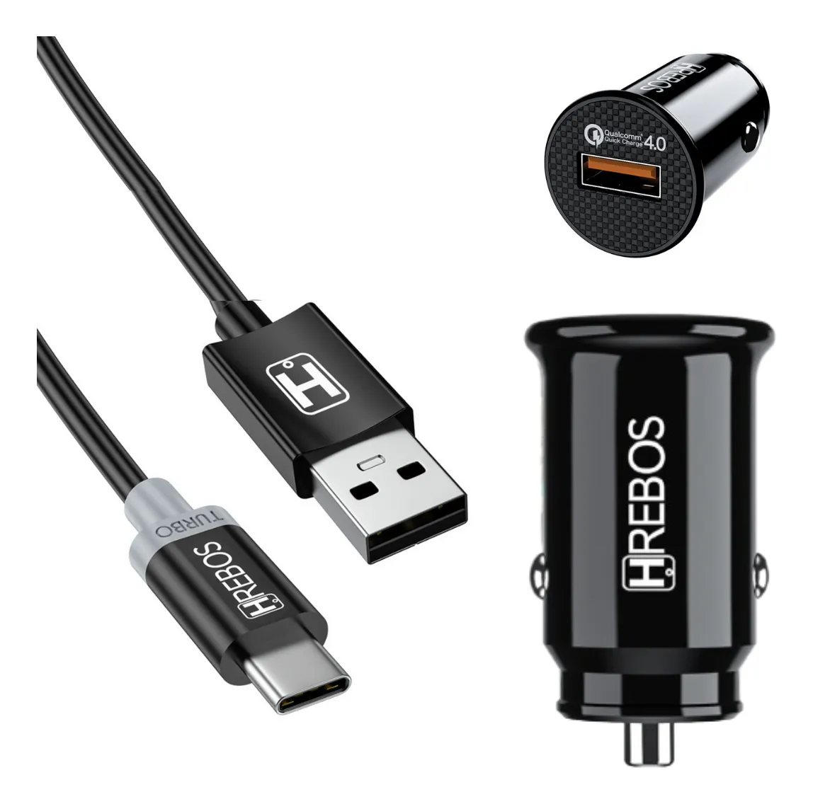 Carregador Veicular Turbo Hrebos HS-308C com Cabo Tipo-C – 18W