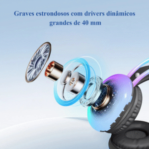 <h2>Fones de Ouvido Bluetooth Over-Ear com Iluminação RGB Automática</h2>