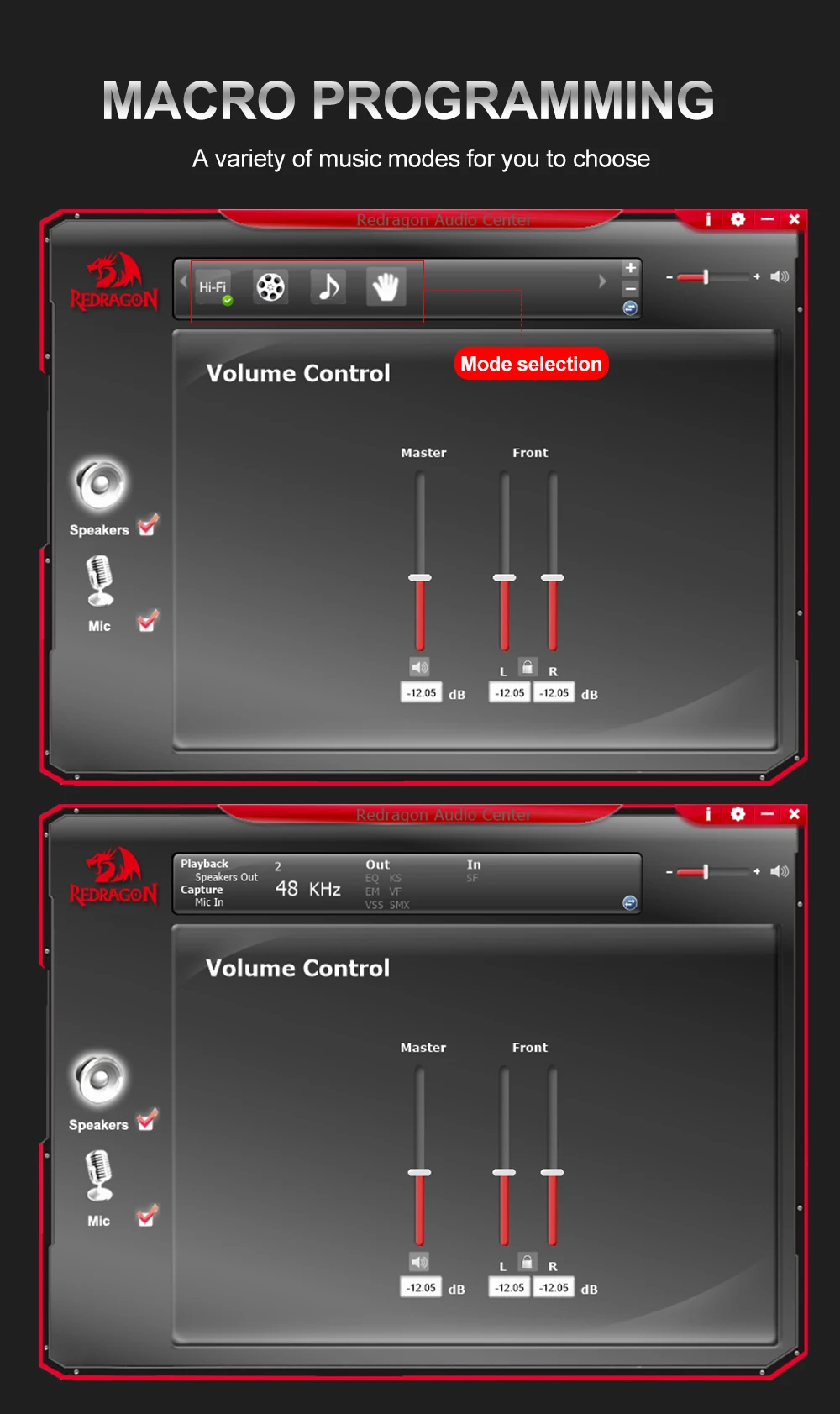 • Compatível com software para ajustes e configurações personalizadas como equalização e controle de volume independente.