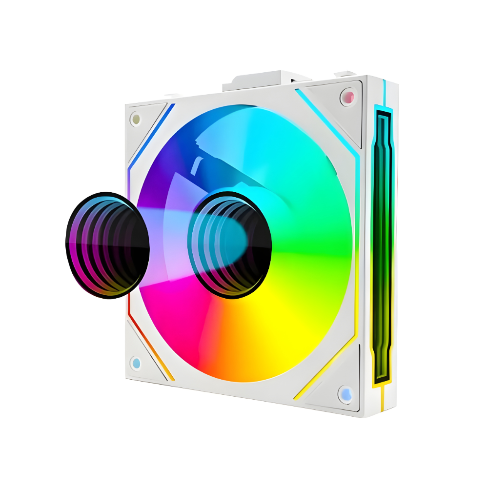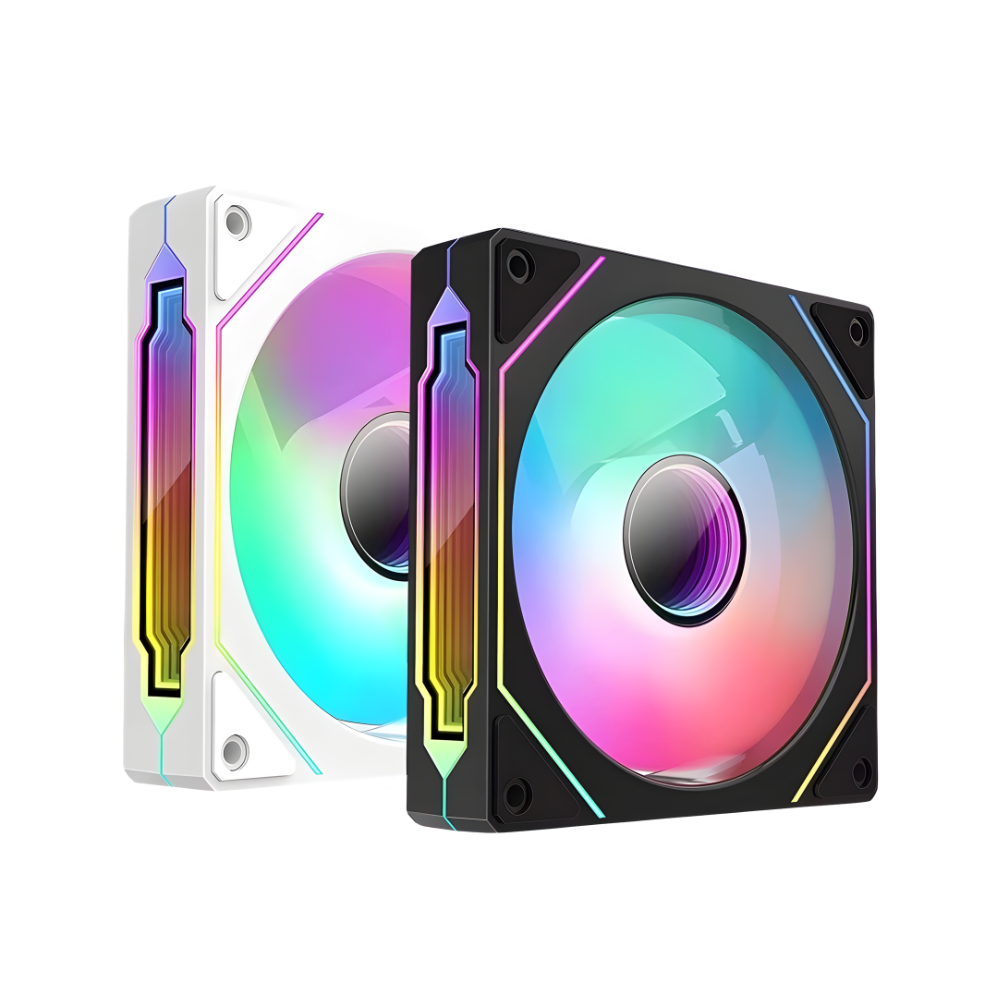 Iluminação ARGB com 24 LEDs por fan, criando efeitos vibrantes e personalizáveis.