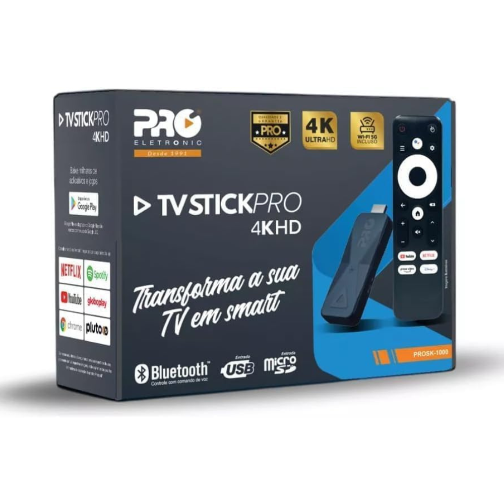 O TV Stick Pro 4K é a solução definitiva para transformar qualquer televisão com entrada HDMI em uma Smart TV completa e moderna.